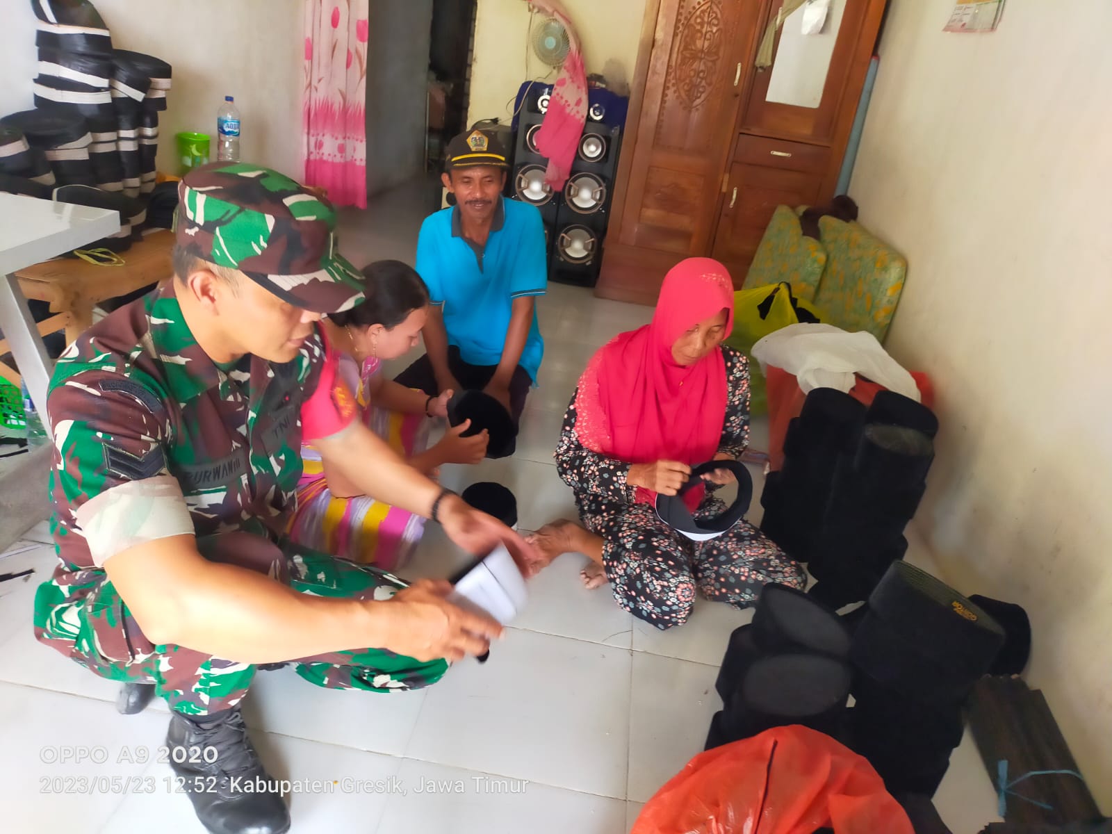 Terus berupaya dalam meningkatkan kesejahteraan masyarakat binaan, Sertu Purwanto Babinsa Koramil 0817/09 Balongpanggang melaksanakan anjangsana ke tempat usaha warga binaan Mukmin dalam pembuatan Peci yang bertempat di Desa Ngasin Kecamatan Balongpanggang Kabupaten Gresik, Sabtu (9/9/2023).